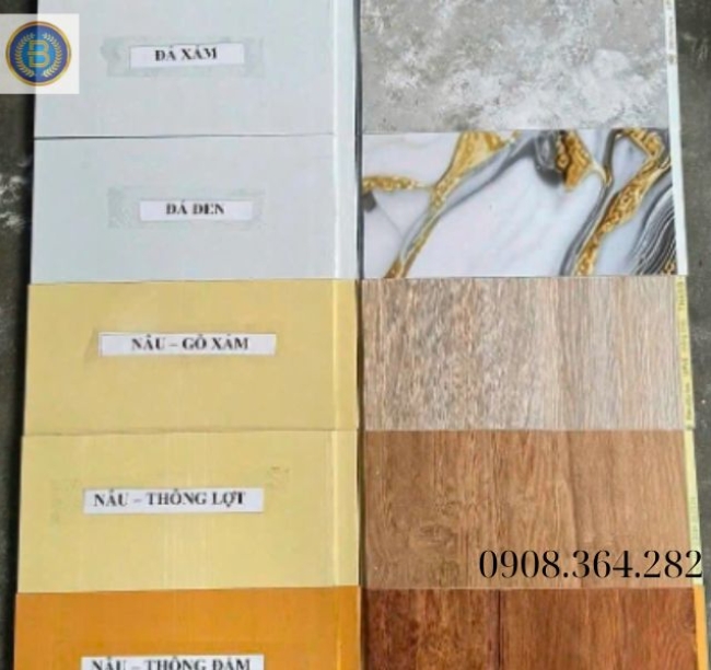 • Màu sắc – hoa văn: Vân gỗ tự nhiên, vân đá, nâu, xám, trắng,...