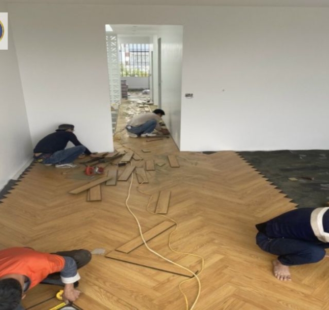 Thợ đang thi công Sàn Gỗ cho khách