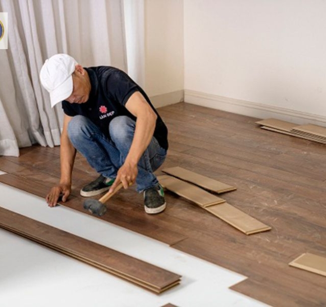 Thợ đang thi công Sàn Gỗ cho khách