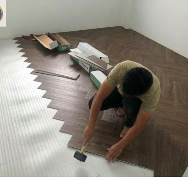 Quá trình thi công sử dụng hệ hèm khóa thông minh, giúp các tấm sàn liên kết chặt chẽ với nhau mà không cần dùng keo, tạo bề mặt chắc chắn, đồng đều và dễ dàng tháo lắp khi cần bảo trì. Trong lúc thi công, đội ngũ thợ sẽ canh khe giãn nở hợp lý, lắp đặt phào chân tường và nẹp kết thúc nhằm tăng tính thẩm mỹ và bảo vệ sàn lâu dài.