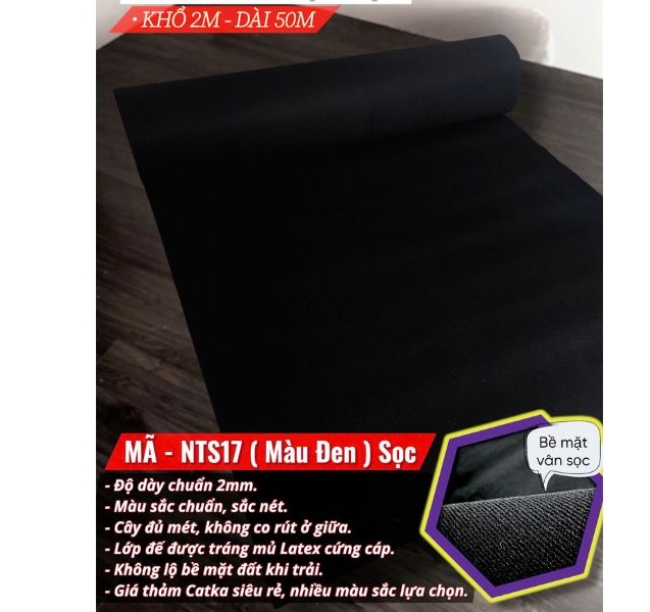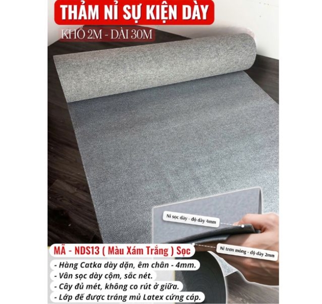 • Khổ thảm: Khổ rộng phổ biến 2m, có thể trải liền mạch tạo sự thẩm mỹ cao.