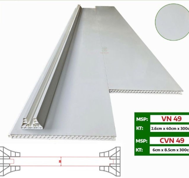 • Nhựa PVC: Nhẹ, chống ẩm mốc, dễ thi công.